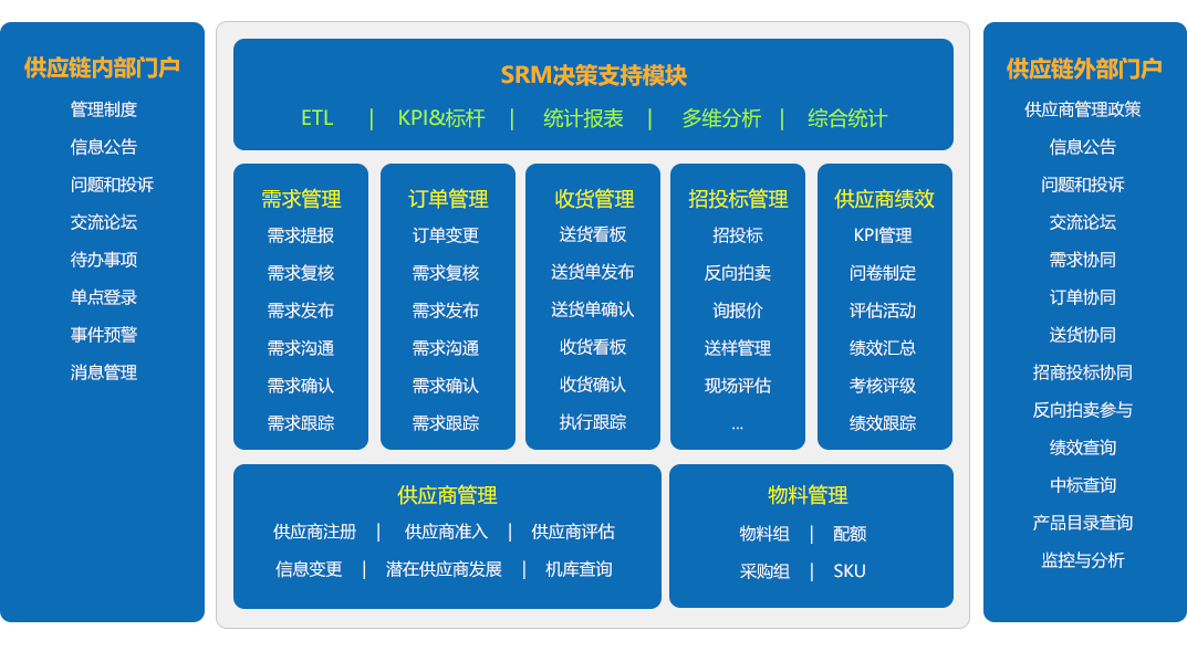 HuaZhi SRM是一套企業與其戰略供應商之間的協同采購平臺。系統基于因特網技術,可實現VMI(供應商管理庫存)、Consignment(寄售)、JIT(即時采購)和電子訂單采購等多種采購管理模式。