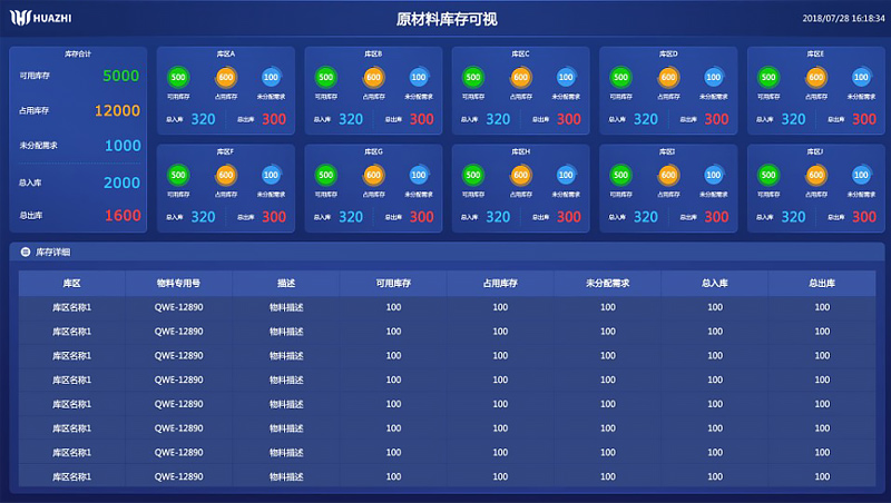 主要包含庫存交易報表、庫齡分析報表、呆滯物料報表、質量追溯報表、倉庫任務看板等等。